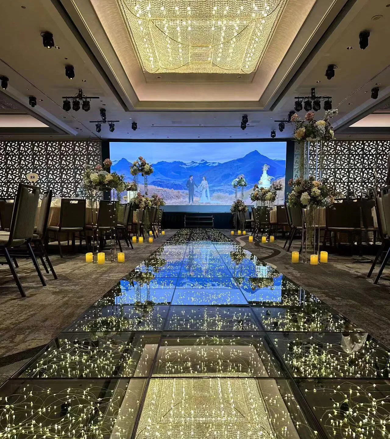 The LED dance floor simulates the twinkling effect of a starry night sky, with soft and dreamy lighting that creates a romantic and mystical atmosphere, adding a touch of enchantment to any party or event.